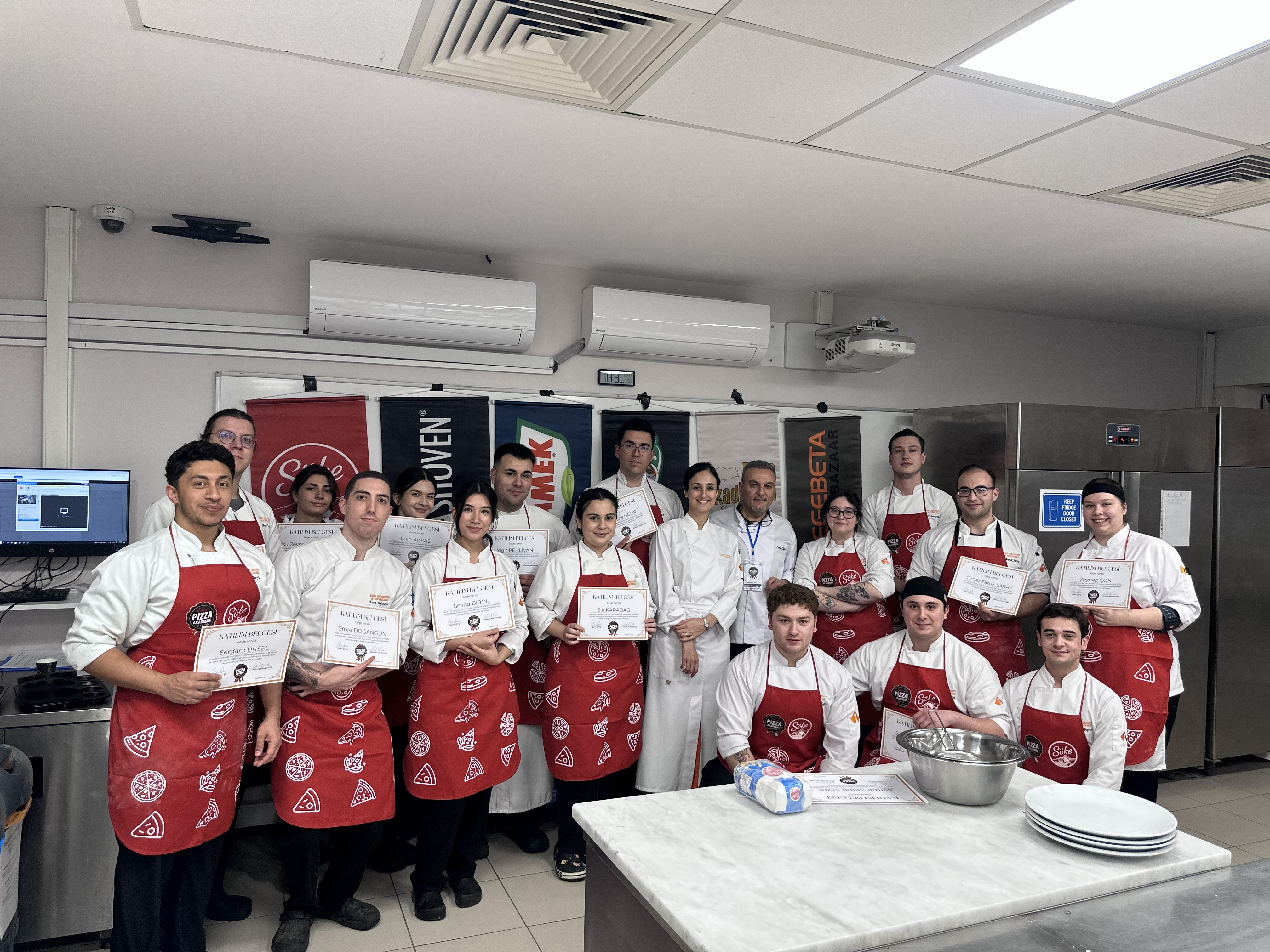 01 Nisan 2026 tarihinde İzmir Ekonomi Üniversitesi’nde gerçekleştirilen workshop kapsamında, gastronomi alanında eğitim gören geleceğin şef adaylarıyla kapsamlı ve uygulamalı bir pizza eğitimi programı gerçekleştirildi. 20 öğrenci ve 3 akademisyenin katılımıyla düzenlenen bu özel etkinlikte, pizzanın teorik ve pratik tüm temel aşamaları detaylı şekilde ele alındı.